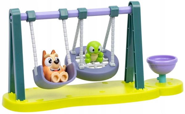 Zabierz dzieci do świata pełnego radości i przygód z bajki „Bluey”! To uroczy plac zabaw z dwiema huśtawkami, na których można posadzić dołączone figurki: Bingo oraz jej żółwiego przyjaciela. Dzięki realistycznym detalom i żywym kolorom zestaw idealnie odzwierciedla klimat serialu animowanego.