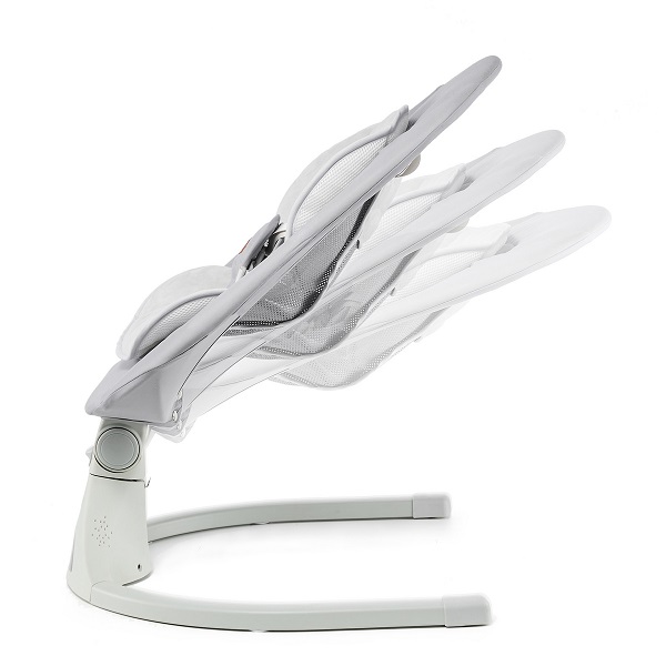 Elektryczny leżaczek-bujaczek – automatyczne kołysanie w pięciu prędkościach dla spokojnego relaksu dziecka, możliwość ustawienia timera bujania na 8, 15 lub 30 minut.