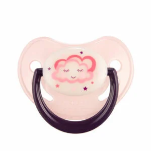 Smoczek uspokajający NIGHT DREAMS wykonany z najwyższej jakości, bezzapachowego i bezsmakowego silikonu. Wyposażony został w gumkę o anatomicznym kształcie. Smoczek dobrze odpowietrza się, dzięki specjalnym otworom wentylacyjnym na tarczce. Posiada świecącą tarczkę, która ułatwia znalezienie smoczka w ciemności. Nie zawiera BPA. Dostępny w kilku kolorach. Przeznaczony dla dzieci powyżej 18 miesięcy.