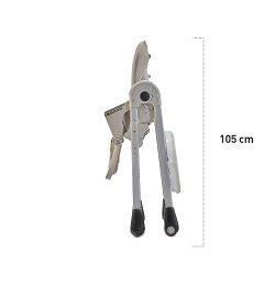 ŁATWOŚĆ PRZECHOWYWANIA Krzesełko można złożyć do pozycji stojącej. Po złożeniu tackę można przypiąć pionowo do tylnych nóg – produkt zajmuje jeszcze mniej miejsca.