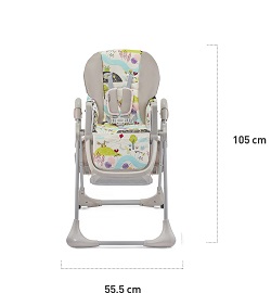 REGULOWANA TACKA 3-punktowa, wyjmowana tacka z możliwością regulacji jest łatwa w czyszczeniu oraz umożliwia wygodne posadzenie dziecka na krzesełku.