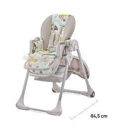 Wygodne, składane krzesełko z regulowanym oparciem pozwala maluchom korzystać z krzesełka, gdy tylko nauczą się siedzieć. Miękki pokrowiec z ekoskóry zapewnia wygodę i łatwość czyszczenia, a regulowany podnóżek – komfort spożywania posiłków.