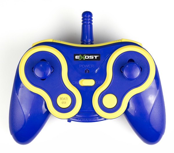 Sprytne autko w wersji kompaktowej, które wyposażone jest w mnóstwo funkcji. Pojazdem steruje się za pomocą dołączonego pilota. Przy jego pomocy możemy obrócić opony na płasko, przekształcając zabawkę z samochodu w łódź! Pojazdem możemy bawić się na podłodze lub umieścić go w wannie czy misce i obserwować jak pływa po wodzie.
