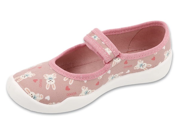 Dziewczęce balerinki, które świetnie sprawdzą się jako obuwie zamienne w przedszkolu. Wykonane z przewiewnych tkanin. Model posiada oddychającą podeszwę. To wszystko sprawia, że stopy nie pocą się w nich nadmiernie. Skórzana wyściółka wzmaga komfort użytkowania. Uniwersalna kolorystyka będzie pasować do wielu stylizacji. Urocza aplikacja z pewnością przypadnie do gustu każdej dziewczynce.