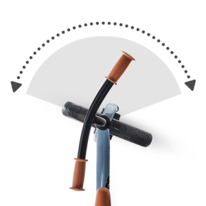 Rowerek biegowy 2WAY NEXT ma ograniczony skręt kierownicy. Ogranicza to możliwość upadku, gdy maluch podczas nauki niechcący gwałtownie skręci kierownicą.