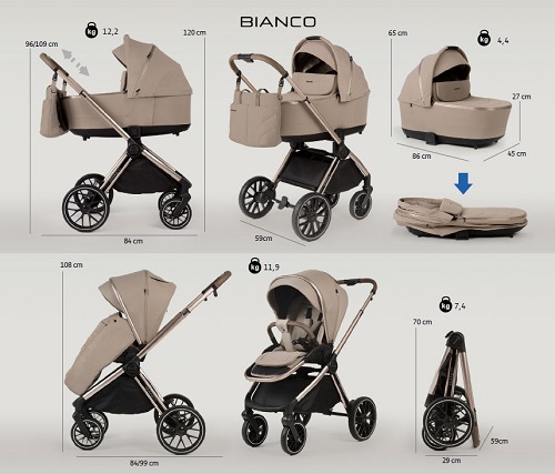 - Wnętrze gondoli wózka BIANCO zostało starannie wykończone, tworząc przytulne i wygodne miejsce dla dziecka, które zapewnia mu poczucie bezpieczeństwa i komfortu podczas każdej podróży.